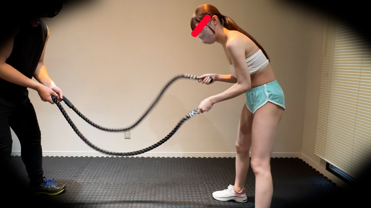 更にトレーニングを続けていると、ロープが手から落ちてしまいました。