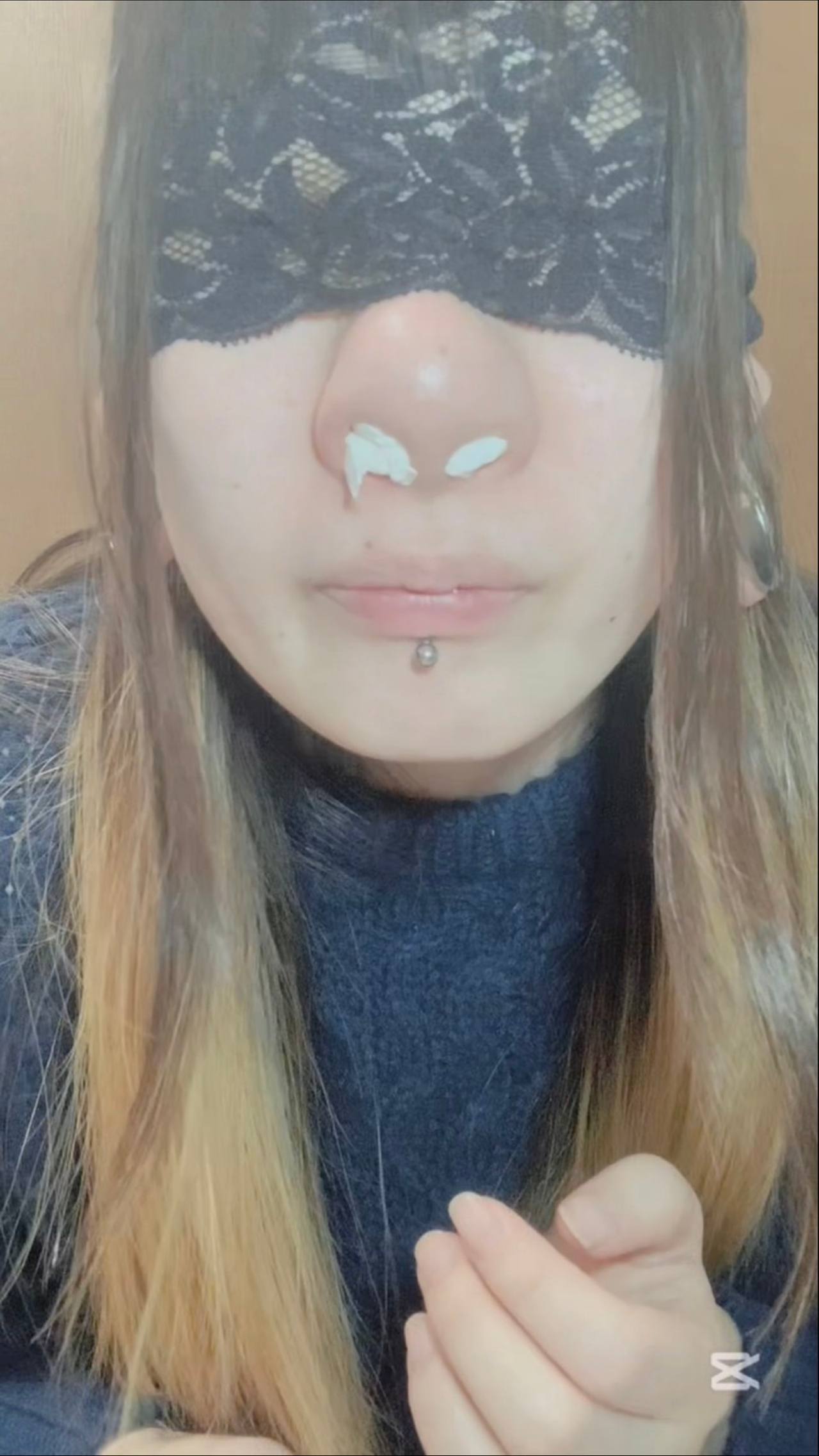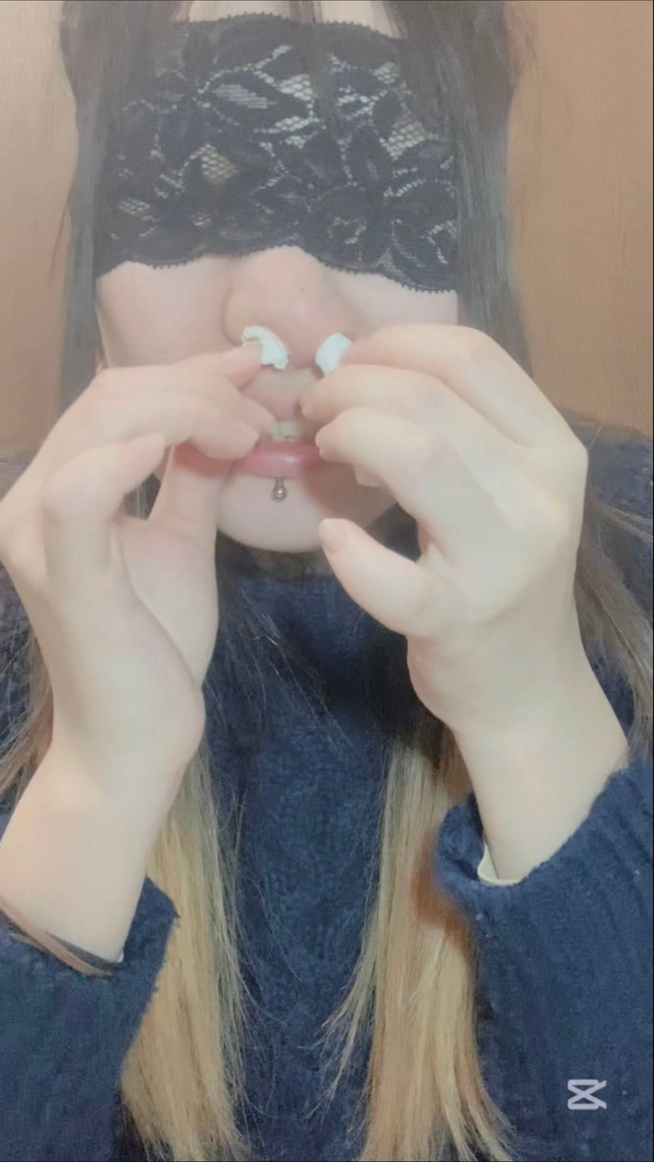 お鼻に何も入れてない状態でのストッキングを被った動画もアップしているので、