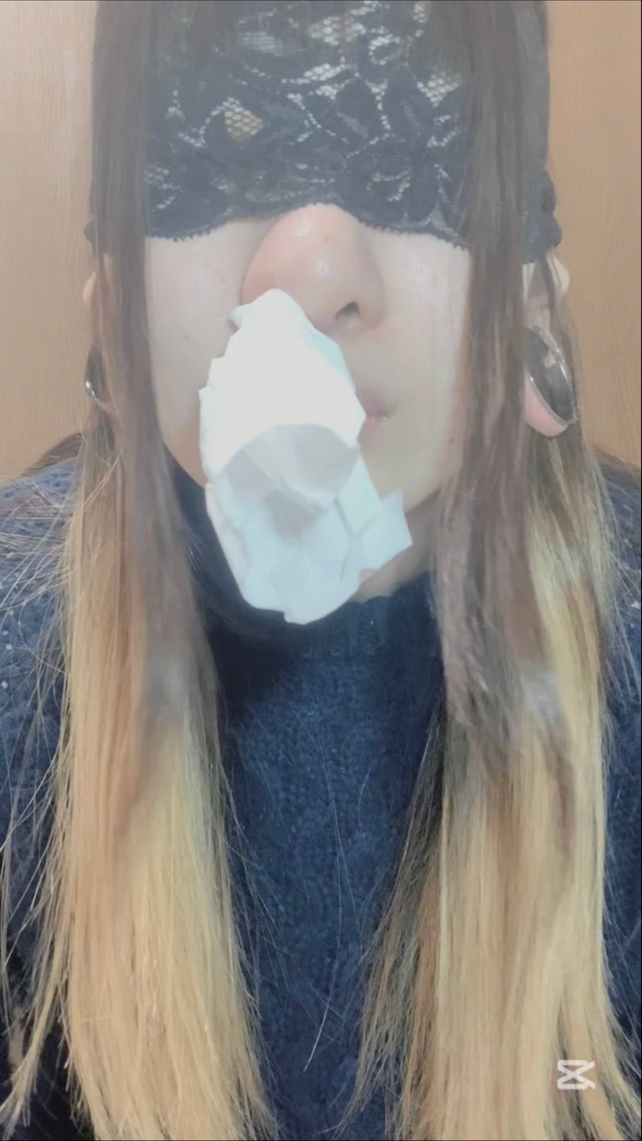 これこそリアル団*鼻!お鼻にティッシュを詰めてストッキングを被る♡